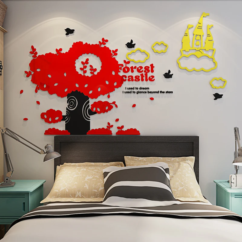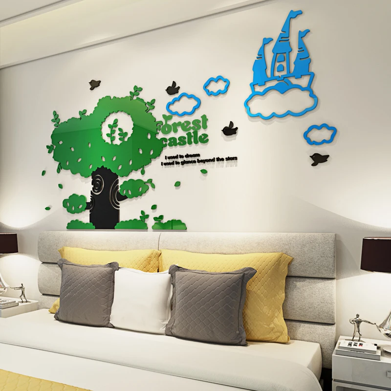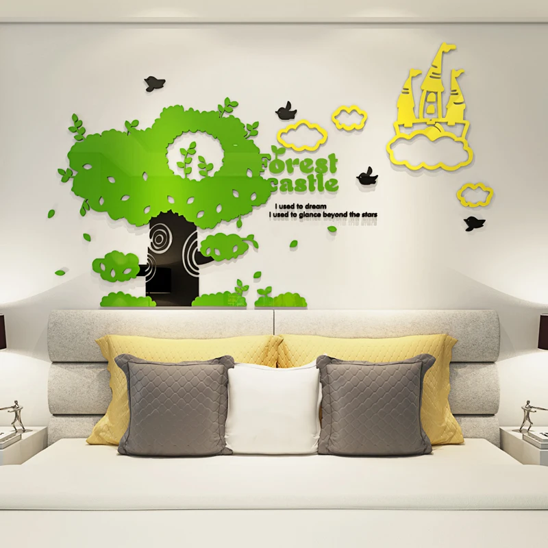 BEST Forest Castle Crystal Acrylic 3d Self-adhesive DIY Wall Stickers Living room bedroom sofa children'