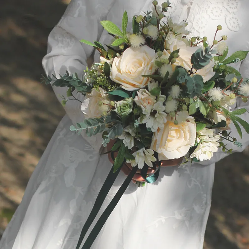 JaneVini Vintage Wedding Bouquets Bohemian Garden Flowers Artificial Silk Roses Outdoor Bridal Fake