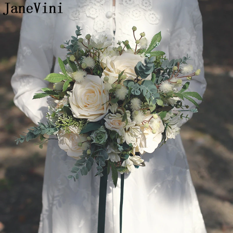 ORIGINAL JaneVini Vintage Wedding Bouquets Bohemian Garden Flowers Artificial Silk Roses Outdoor Bridal Fake