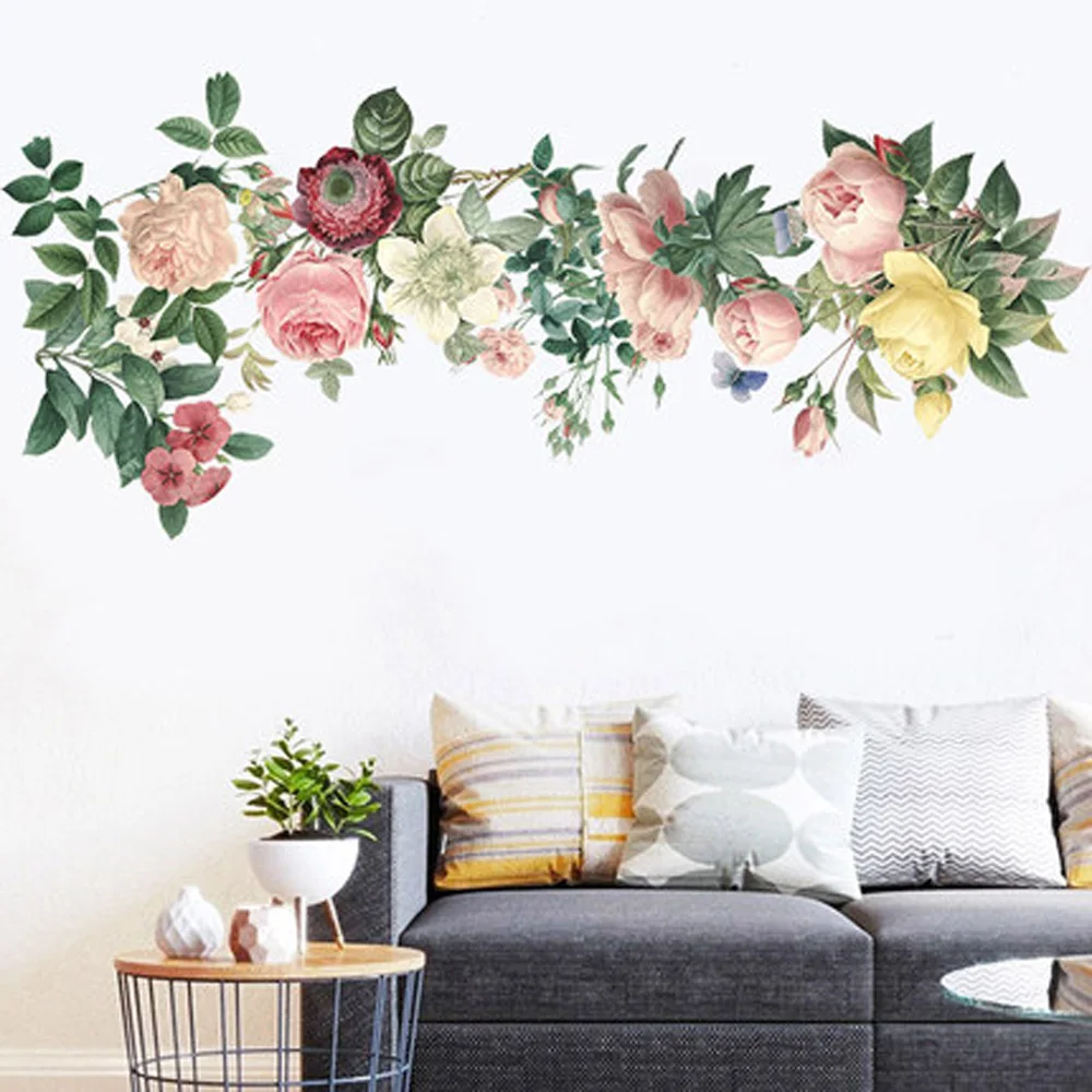 Wall Stickers Flowers Decals Living Room Waterproof Self-Adhesive DIY Decoration
