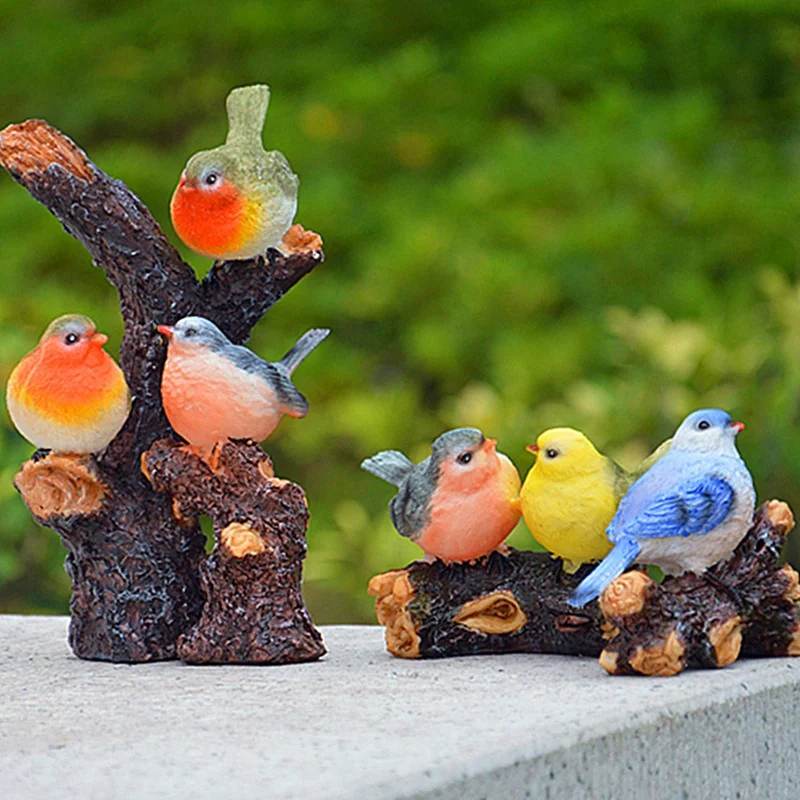 Hot Sale 6Pcs/Set Cute Birds Animal Figurines Resin Miniatures Figurine Craft Bonsai Pots Home Fairy Garden