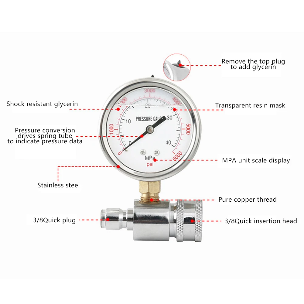 New Agricultural Universal Car 6000PSI For Washer Garden Pressure Gauge Accurate Accessories Tester