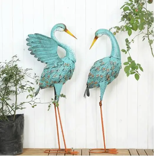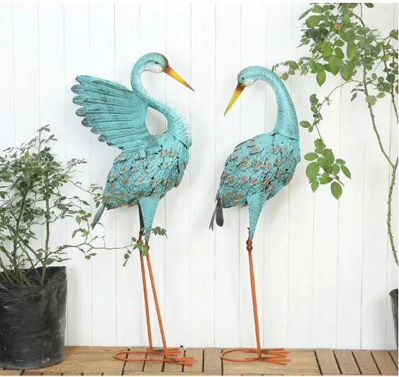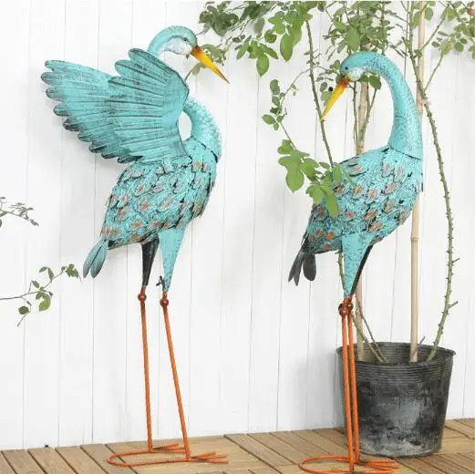 2pcs/lotAmerican country vintage wrought iron blue flamingo ornaments Balcony garden terrace courty