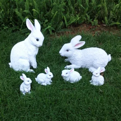TOP Rustic animal sculpture resin rabbit craft outdoor decoration 6pcs/lot garden decoration home Ornam